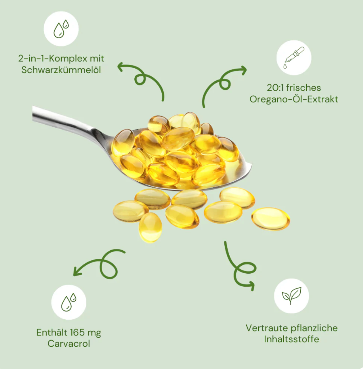 Unsere 2in1 Formel kombiniert hochwertiges Oregano-Öl mit echtem ägyptischem Schwarzkümmel-Öl – für spürbare Wirkung von innen.